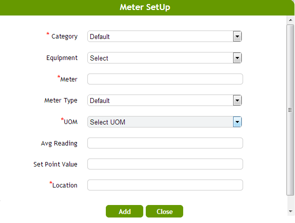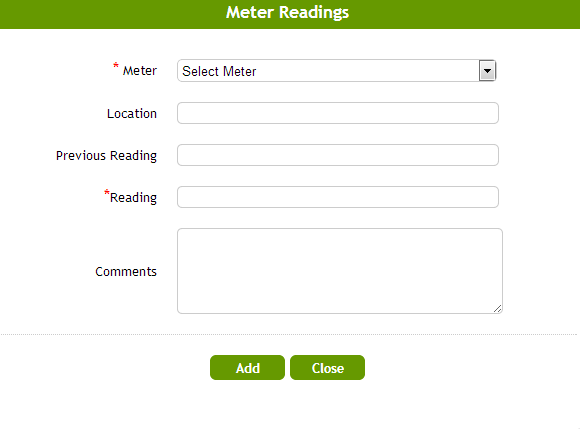 6. Click on Add to enter the meter readings of each meter setup and fill in the form.