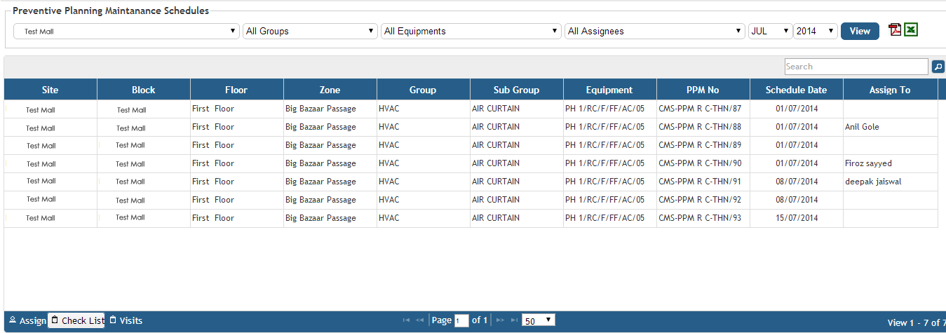 2. For assigning a PPM you have to select the PPM schedule selecting the suitable fields- Site, Group, Equipment, Name of the assignee, month and the year and click on View.