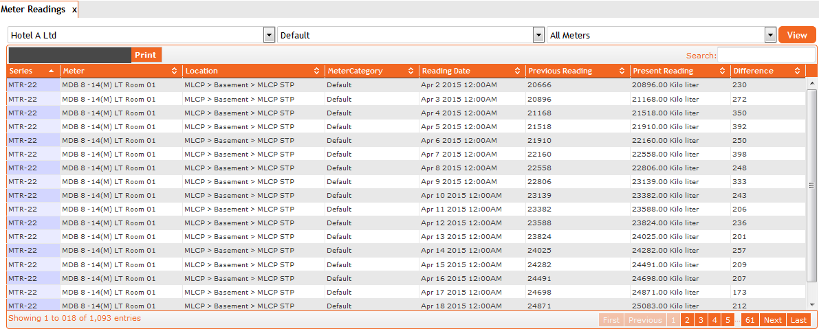 1. To view Meter Readings Reports, Select Meter Readings from the options.